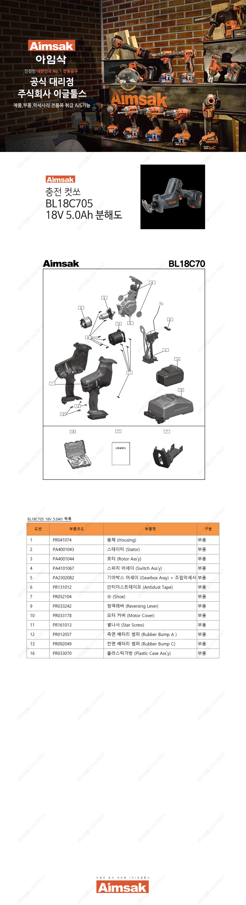 - HOME > ¾ÆÀÓ»è (AIMSAK) > ºÎǰ > [¾ÆÀÓ»èºÎǰ] BL18C705 18V 5.0Ah ÃæÀü ÄÆ½î Á¦Ç° ºÎǰ ºÐÇØµµ